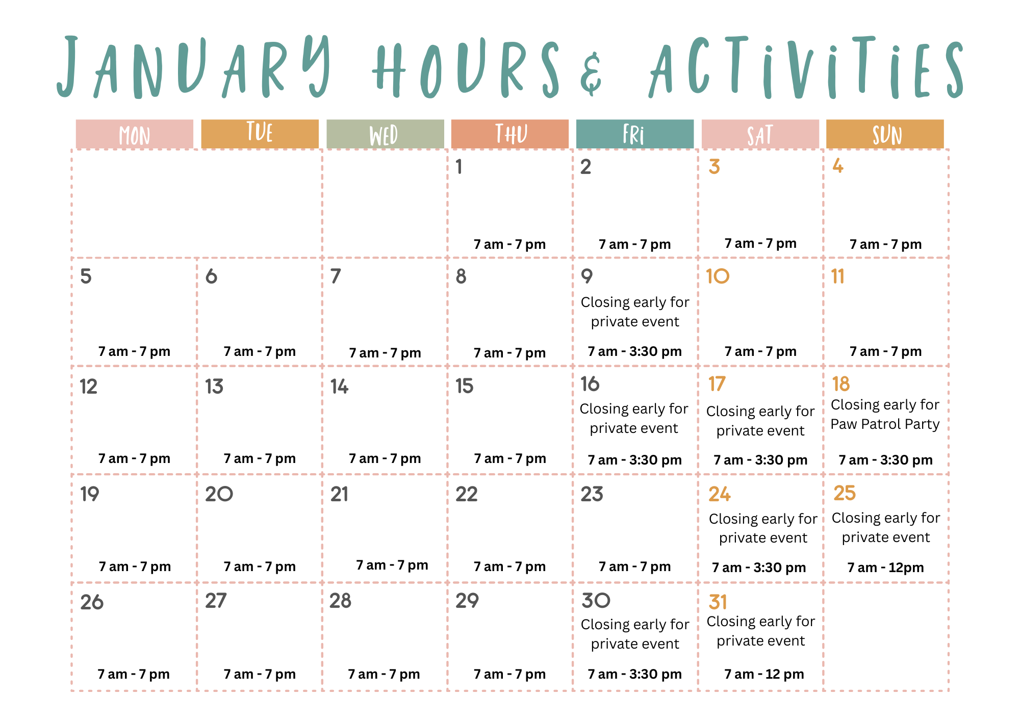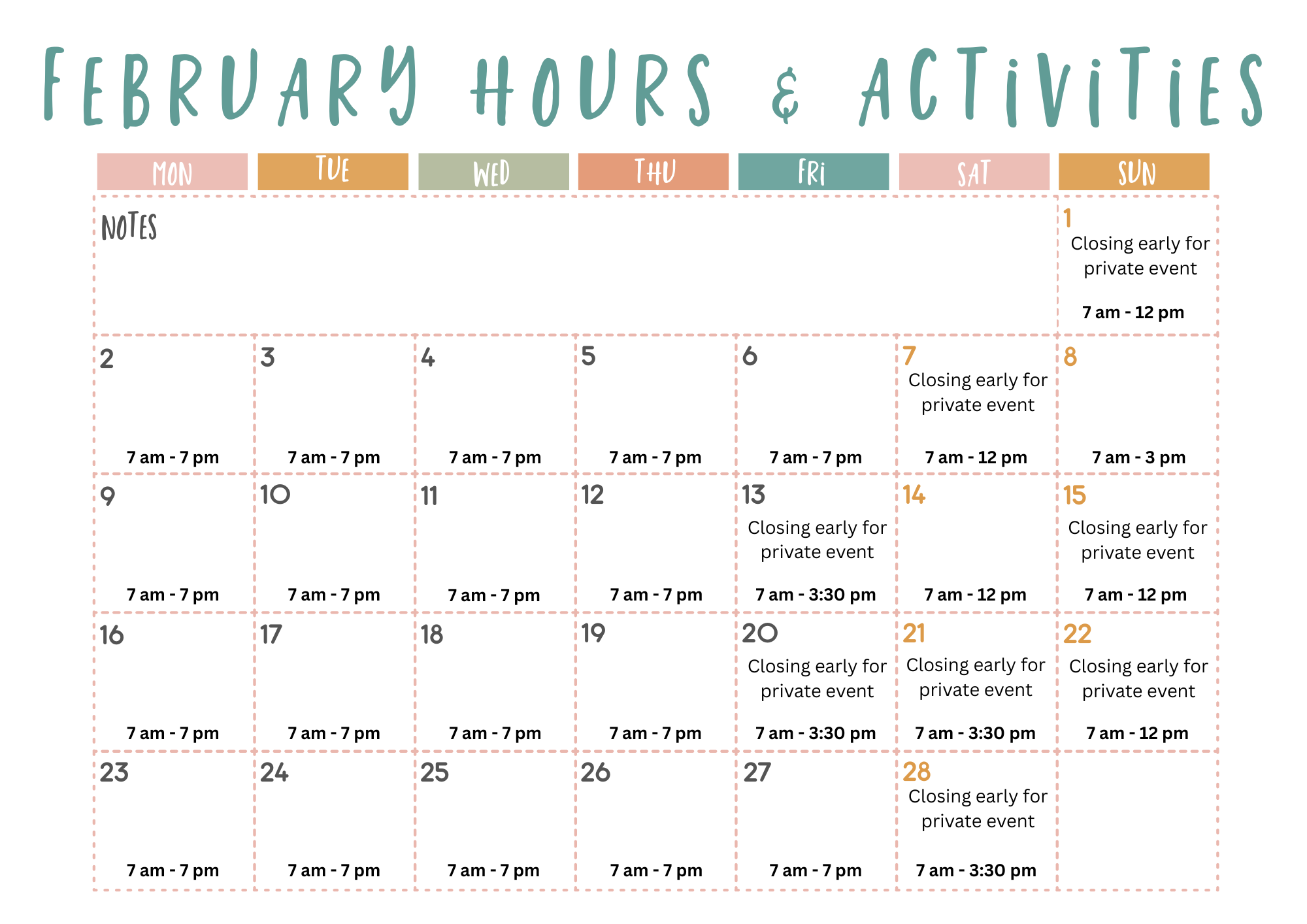 Please always check our up to date hours on Instagram, Facebook, and google. We update these weekly! We often close early on weekends for private parties and events. Thanks!